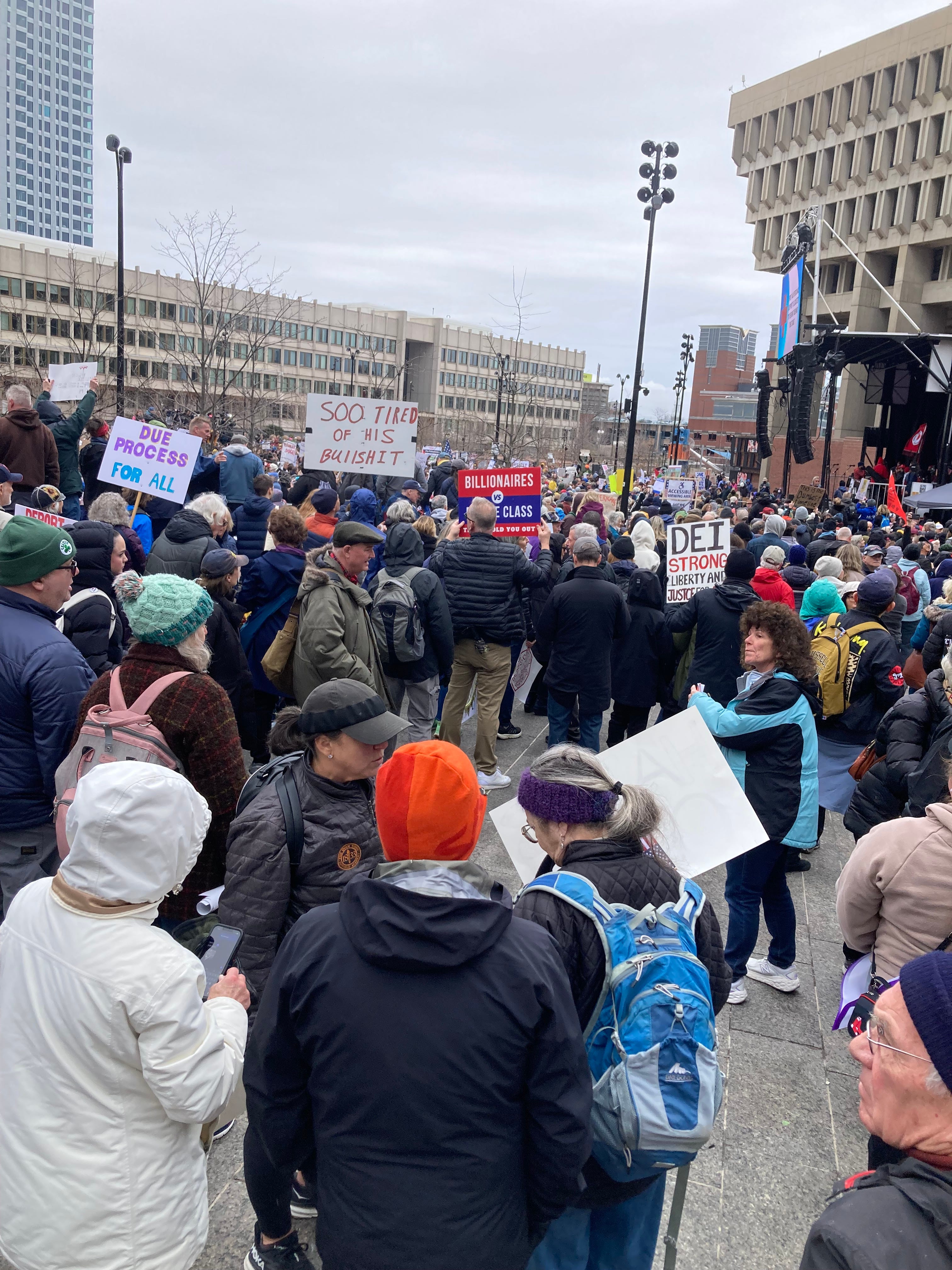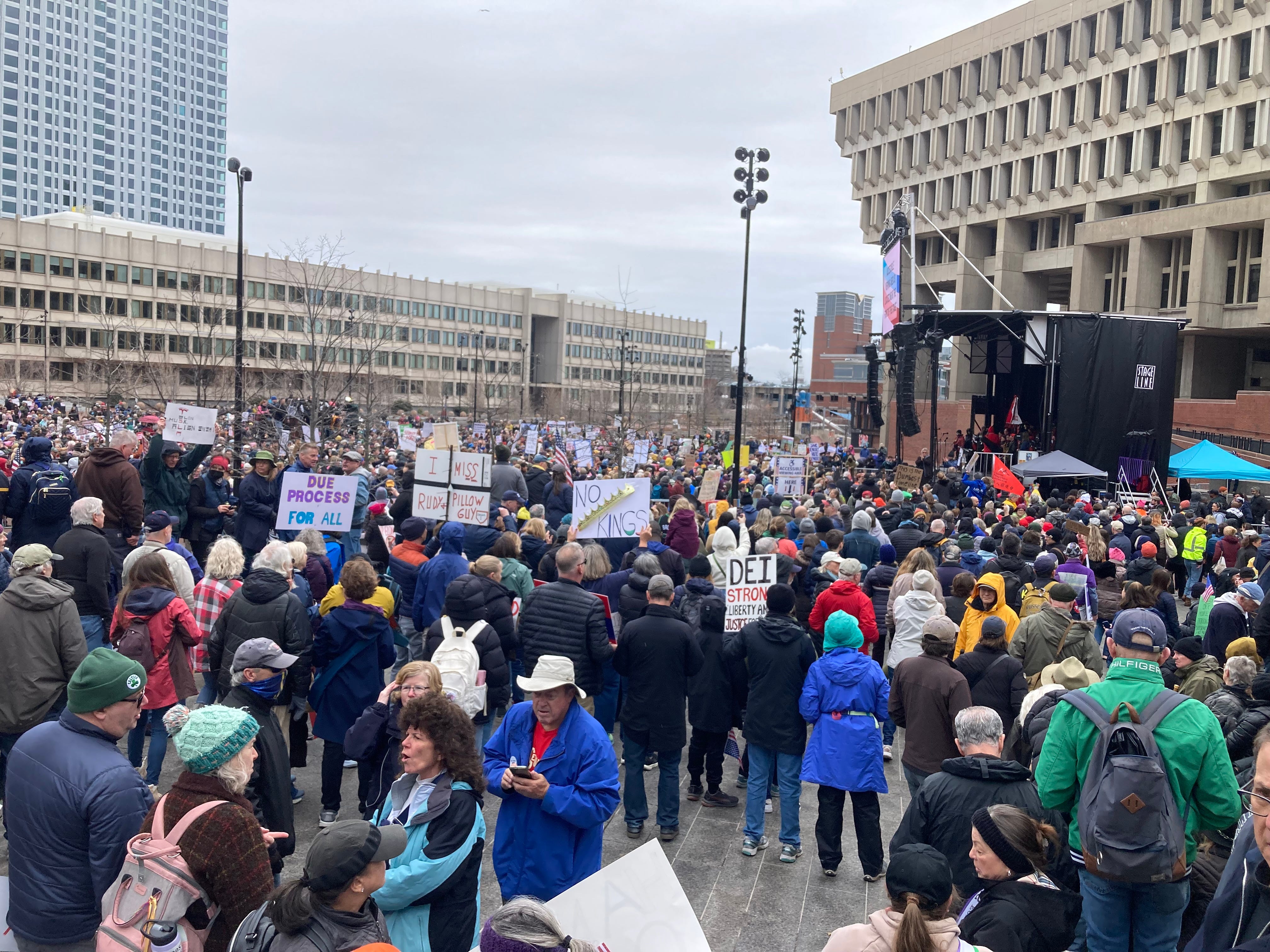 The police estimated the crowd at 30,000 people. It filled the huge Government Center Plaza.